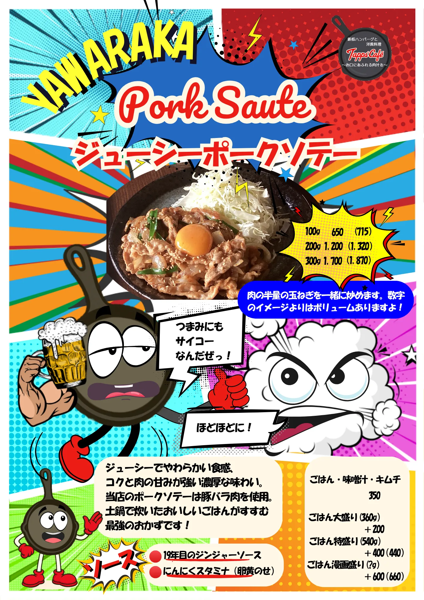 とろける旨さのポークステーキ、香り豊かなポークソテー。