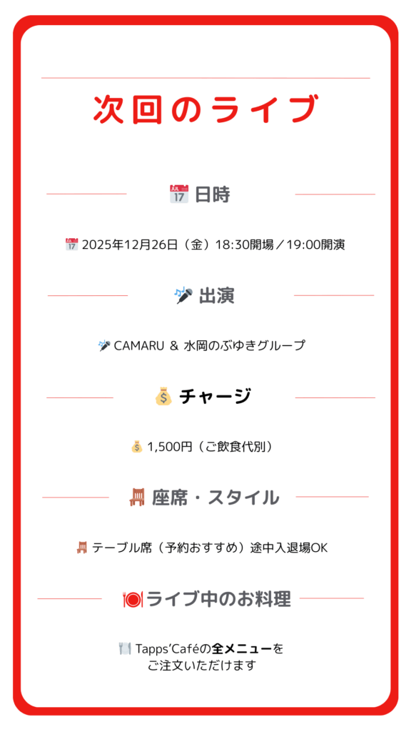 次回のライブのご案内