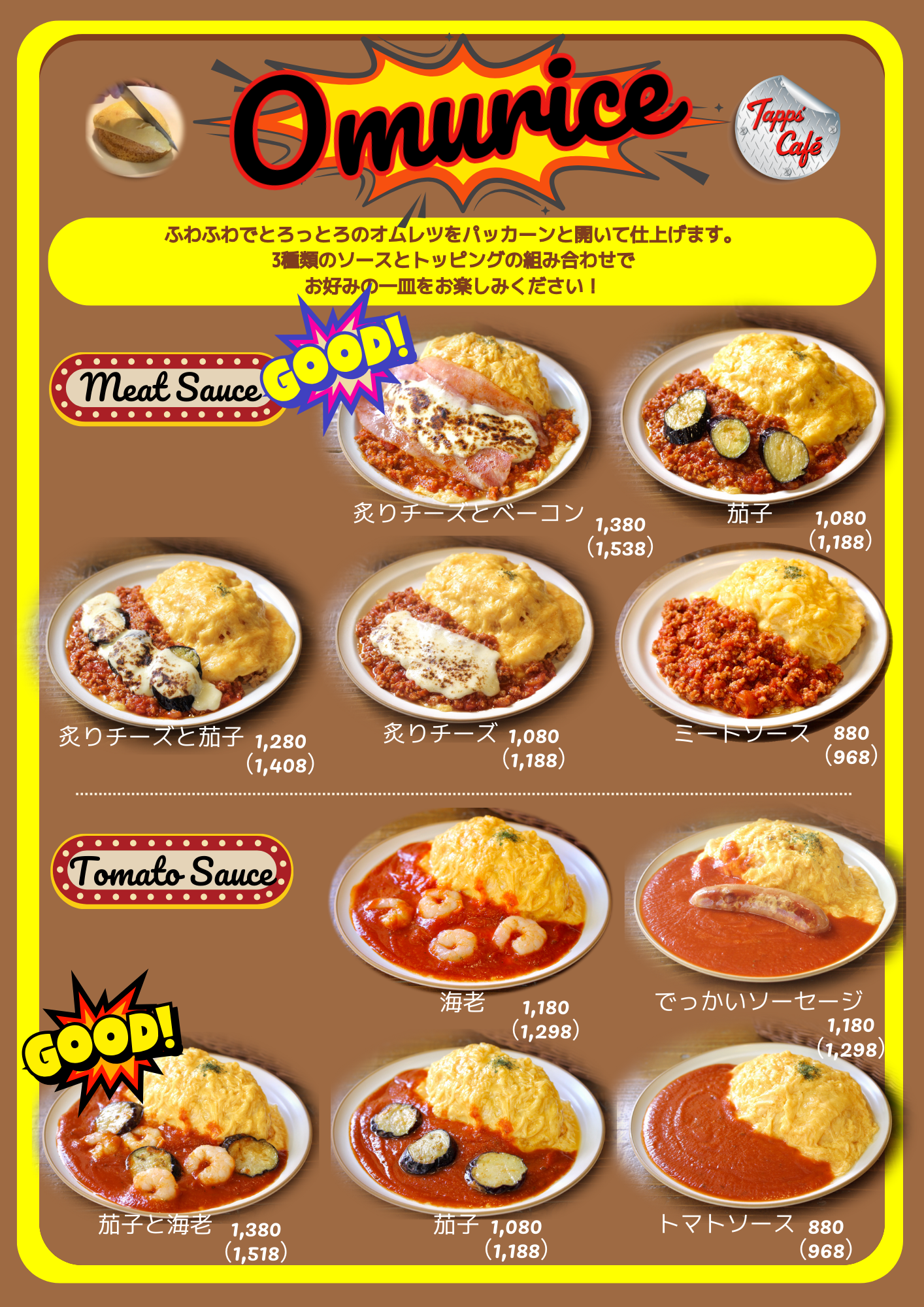 このホームページは現行のメニュー(Tapps’Cafeのメニュー)と同じ、最新の情報に更新済です。